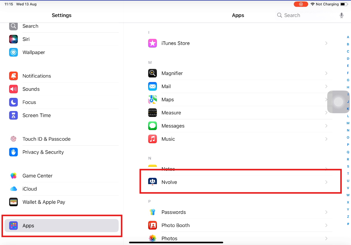 Next, navigate to the 'Apps' section in the menu on the left, and choose the 'Nvolve' app from the list of available applications