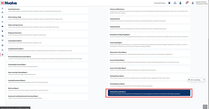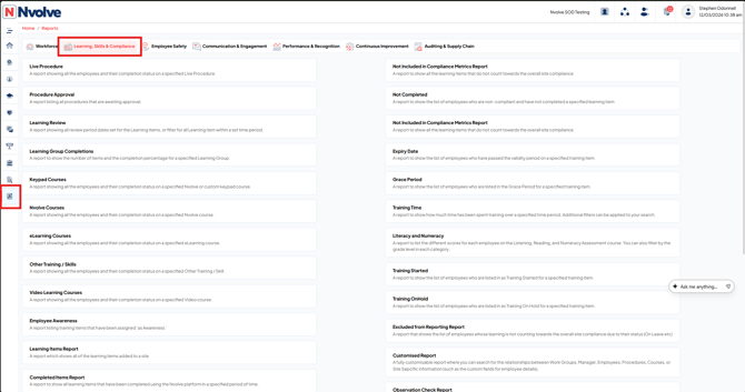 To access this report, navigate to the Reports page and select the "Learning Skills & Compliance" tab.