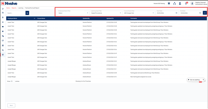 When you run this report you set the Start date and End date of the time-frame you wish this report to cover and you will also have the option to filter by employee, Learning Type and Course name.