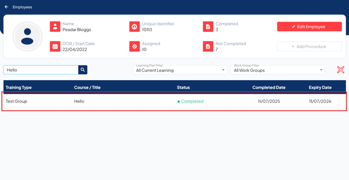 Next, select the employee whose training you wish to refresh by tapping on their name.